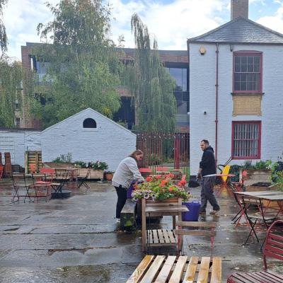 We have been successful in securing some funding to create a community garden in our courtyard behind Live Theatre. The courtyard is surrounded by listed buildings, and is currently looking unloved, and in need of a good tidy. We plan to grow some fruit, flowers and vegetables in raised beds, and make the space much more attractive as a garden in which staff, our tenants, volunteers and members of our community can come and relax.