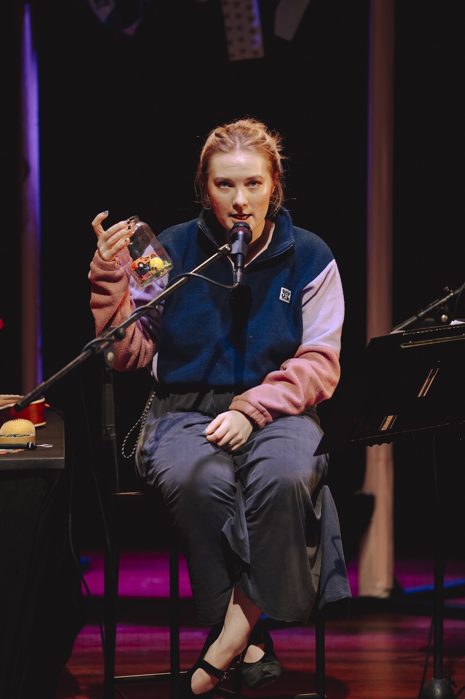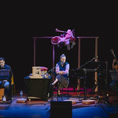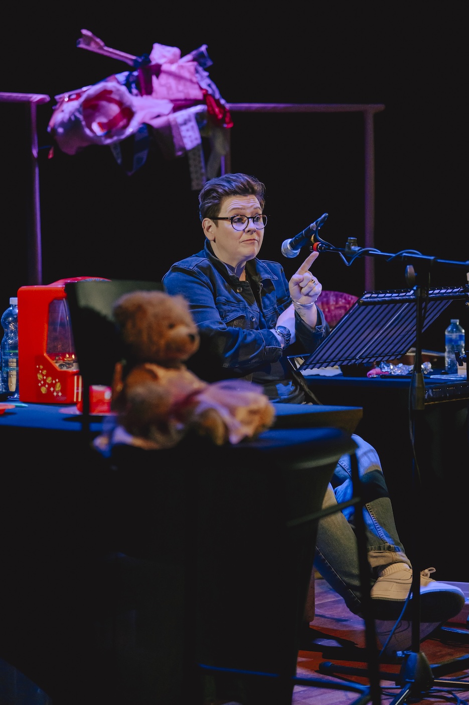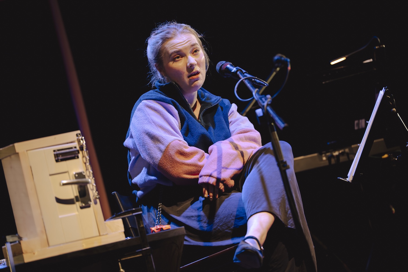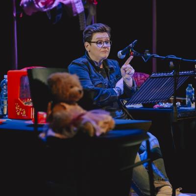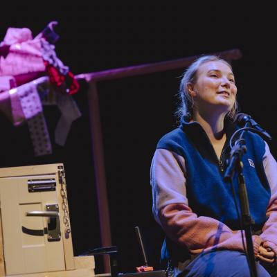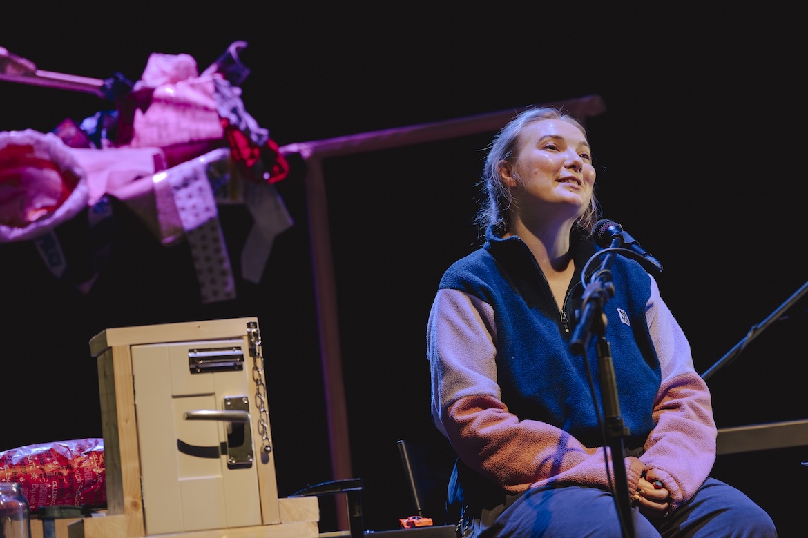 This is a big, bright yellow-and-black content warning: A lot has happened in the life we’re telling — and so, a lot happens in this script. We’re telling this story because we believe people need to hear it. We hope that by sharing it, we can challenge, change, and improve society — through imagination, not obligation. Please take care of yourself as you engage with it. If you require more information, please get in touch with box office.